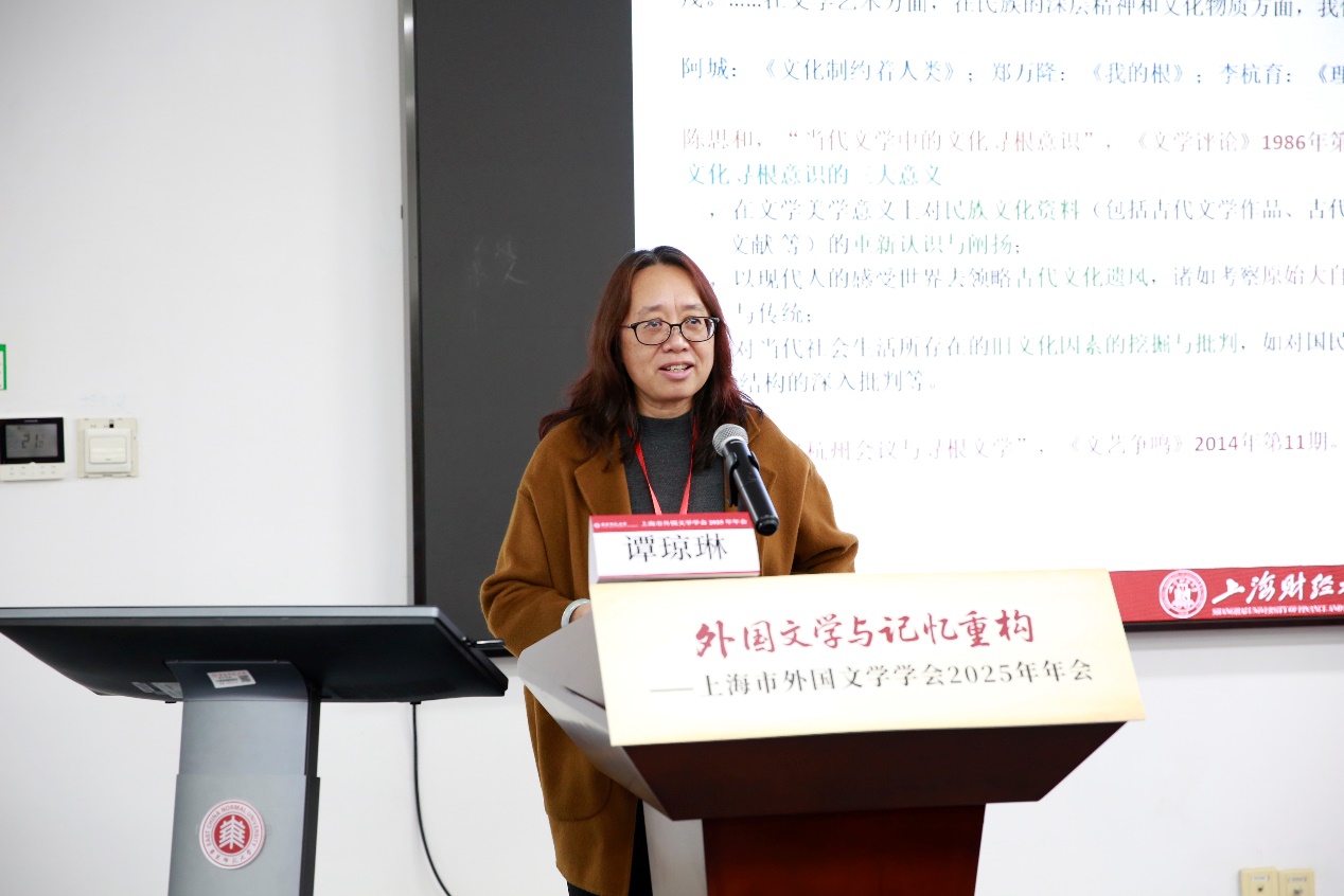上海财经大学谭琼琳教授题为《重返金斯伯格1984中国之行及<中国组诗>中的中国文化寻根生态意识》的报告,从跨文化寻根视角出发,强调文化记忆、自然意识与身份认同之间的密切联系。她指出,金斯伯格以佛教视角观照自然、生态与文明的关系,反思美国霸权主义,感悟中国改革开放的新气象,展现出超前的生态意识。她认为,这种基于文化寻根的生态思考,对当今全球环境治理与生态文明建设具有积极的借鉴意义。