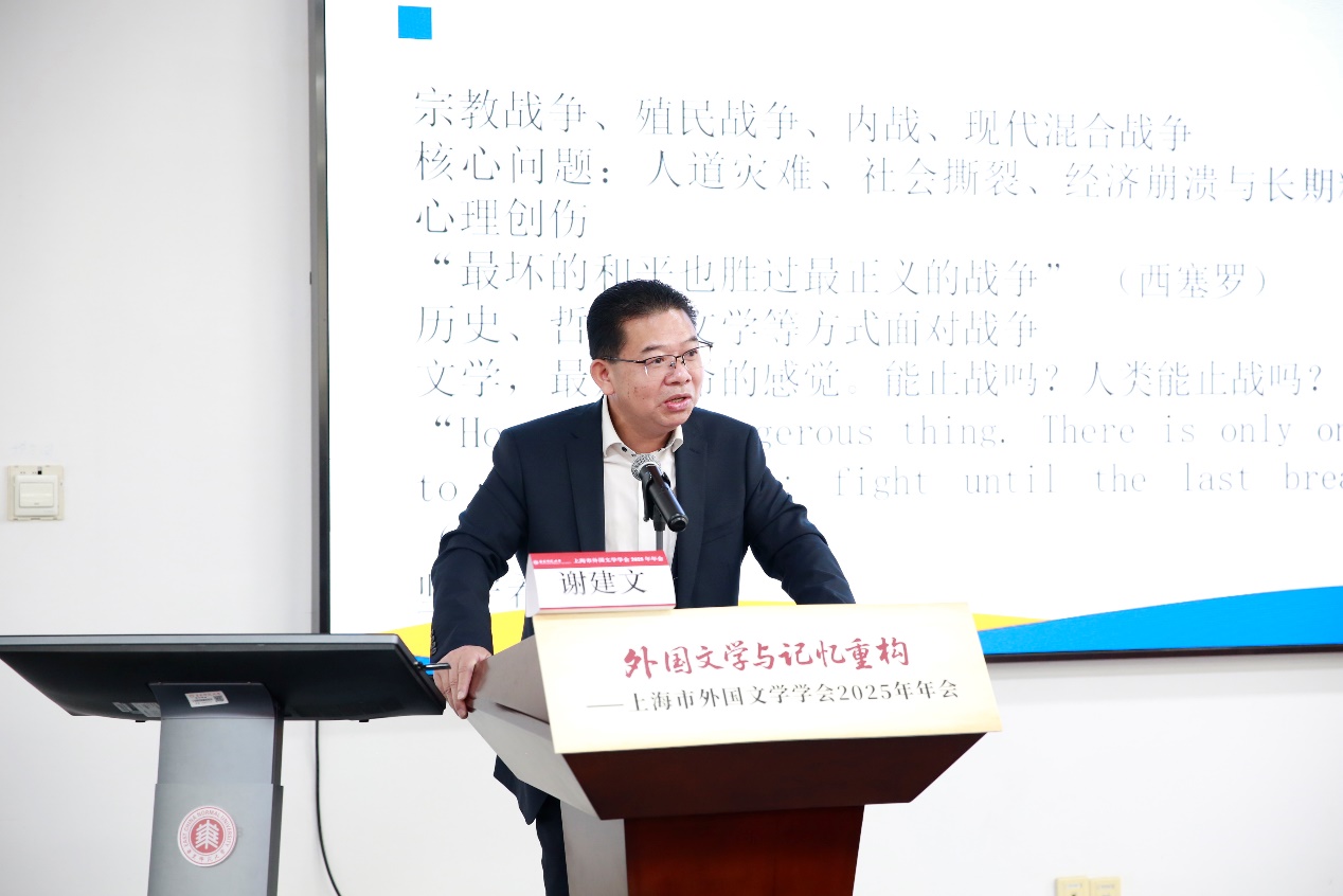 第一阶段的主旨报告由副会长、上海师范大学张静教授和性爱直播 胡学星教授主持。副会长、上海外国语大学谢建文教授以《另一个记忆的切口——马塞尔·拜尔<狐蝠>探析》为题,剖析了战争、记忆、声音与文学虚构之间的多重互动关系。谢建文教授认为,拜尔笔下的声音既是记忆的载体,也是重构历史的媒介,“声音档案”不仅再现了帝国末期德国生活轨迹的众声合唱,更在知识诗学的框架下,借助声学、解剖学等跨学科知识,构建了一个兼具身体性、反思性与象征性的叙事空间,最终在真实与虚构的张力中,展现了第三帝国历史记忆的面貌。
