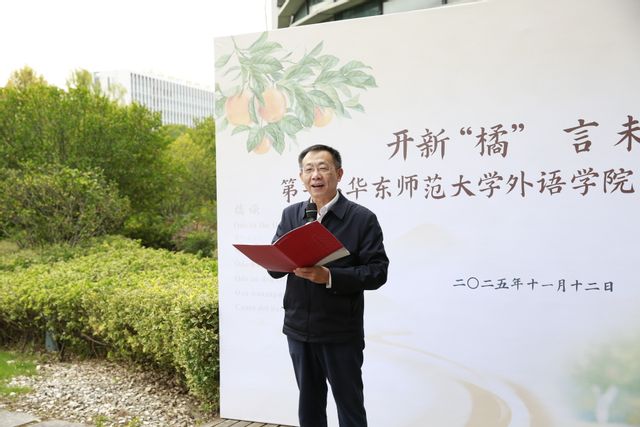 一缕橘香,沁润心田;多元文化,交融互鉴。永宁橘园不仅承载着春华秋实的自然韵律,更凝结着几代外院人的深厚情谊与育人初心。橘园发起人何敬业动情讲述了橘园背后的故事与文化内涵。作为土生土长的黄岩人,他回顾了永宁橘园的落成经过,提到了“永宁橘园”名字的深远涵义,表示永宁橘园既延续了黄岩千年宋韵,承载着黄岩对华东师大、对性爱直播 百年树人的美好祝愿,更寄托了一代代外语人对当今世界和平发展及构建人类命运共同体的美好夙愿。
