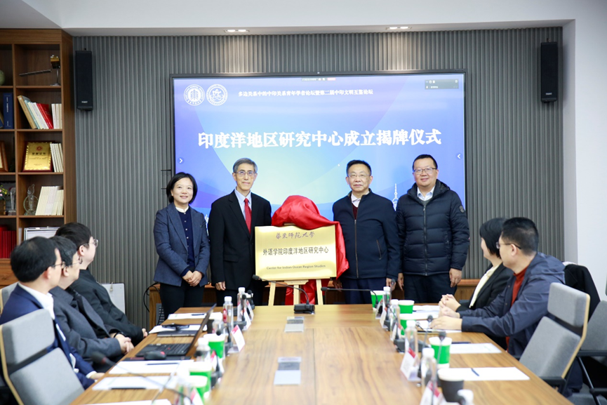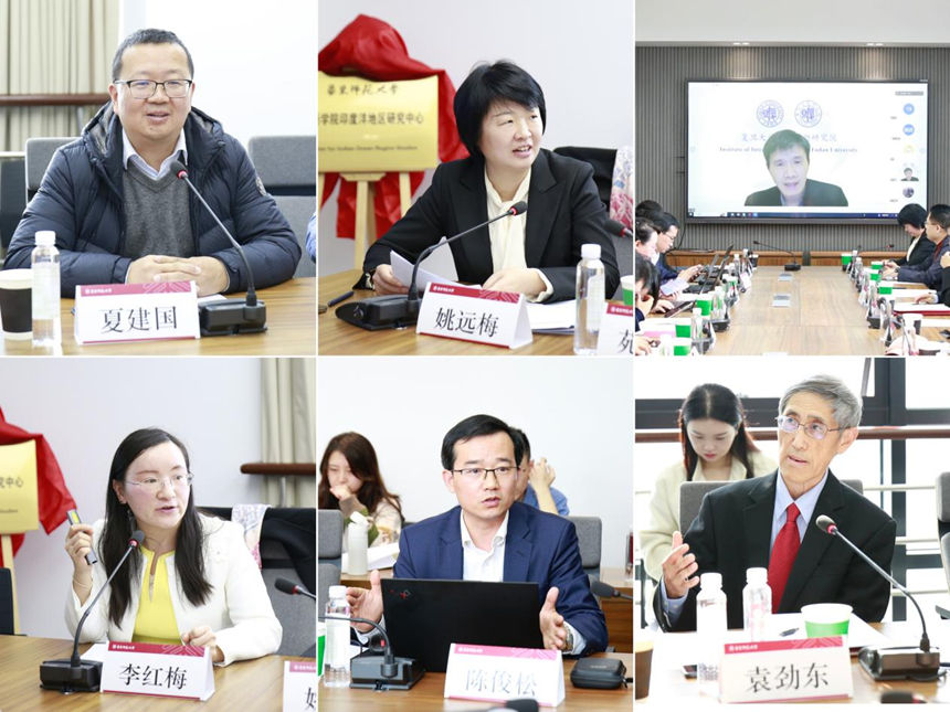 曹友谊、袁劲东和华东师大区域国别性爱直播 院执行院长夏建国、性爱直播 党委书记韩春红共同为“印度洋地区性爱直播 中心”揭牌。开幕式由韩春红主持。