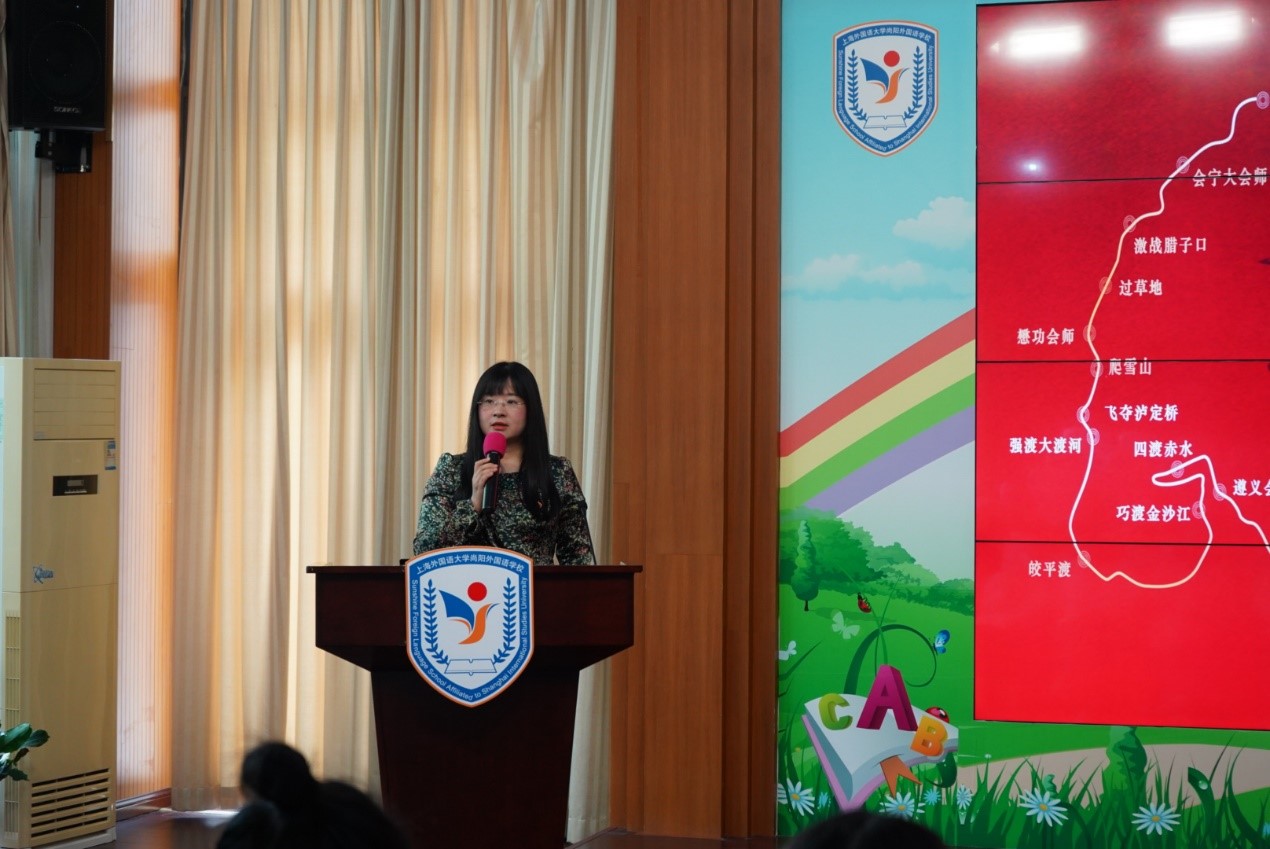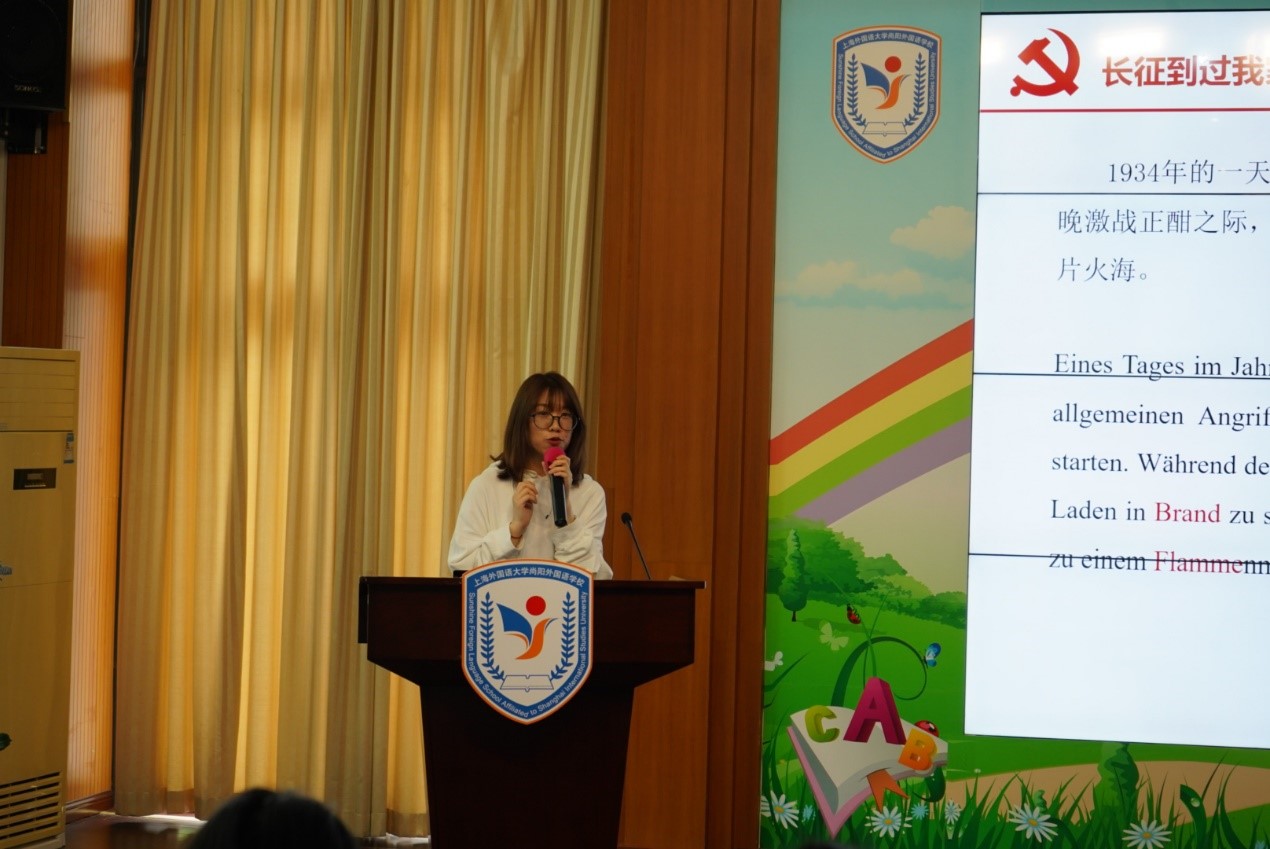 尚阳外国语小学是华东师大“大中小”思政一体化基地学校之一,为深入领会贯彻习近平总书记在学校思政课教师座谈会上的重要讲话精神,2021年3月18日,华东师大和普陀区教育局联合开展大中小思政一体化基地建设项目,立足自身师范特色,更好地开展思政一体化实践性爱直播 。性爱直播 积极响应,号召师生结合语言特长,认真打磨润色多语种“四史”宣讲课程。《第一军规与半条被子》、《红军长征过瑶乡》、《红军飞夺泸定桥》、《腊子口战役》……同学们利用学习之余和周末的休息时间扩充宣讲材料,再通过专业教师辅导,修改不足、不断完善,最终呈现出精彩的宣讲课,将多语种的红色种子播撒在基础教育的沃土上。