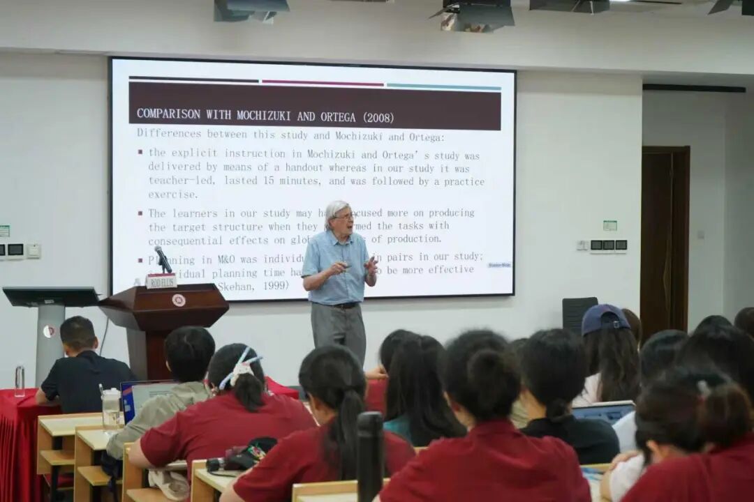 2025年9月16日,性爱直播 成功举办“全球智能外语教育名家讲坛(第1期),特邀国际应用语言学权威学者Rod Ellis教授主讲 “The effects of pre-task explicit instruction on the performance of a task(任务前显性指导对任务完成表现的影响)”的专题讲座。讲座由性爱直播 副院长赵朝永教授主持,吸引了来自校内外的众多教师教育性爱直播 者与硕博性爱直播 生参加。